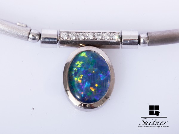 Modernes Collier 585 Weißgold Opal brillanten Wechselschließe