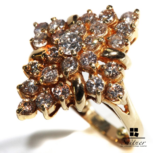 großer 1,72ct. Brillanten - Design Cluster Ring aus 750 Gold