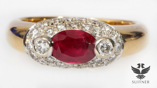 moderner 1,07ct. Ring mit Rubin und Brillanten aus 750 Gold RG 54 wohl Myanmar
